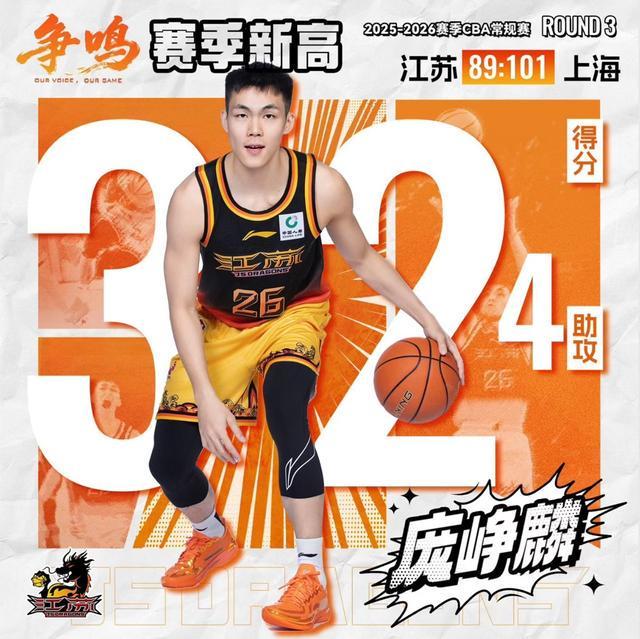 32分,也创下本赛季CBA新秀单场得分新高;前三战场均20.7分,高居所有新秀之首。江苏队今年以第三顺位选中的庞峥麟,是一位已经26岁的大龄新秀,也是广西篮球的一位孤勇者。