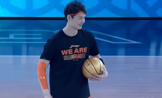 王哲林作为现任队长获赠象征上海男篮精神的金色篮球。