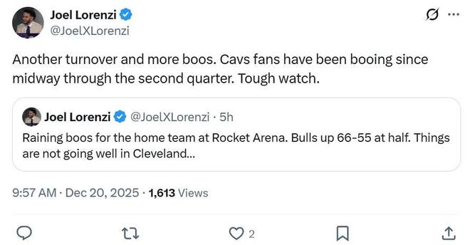 面对骑士队糟糕的表现,根据美记Joel Lorenzi报道,骑士队主场球迷倒戈,从第二节开始便嘘声四起。