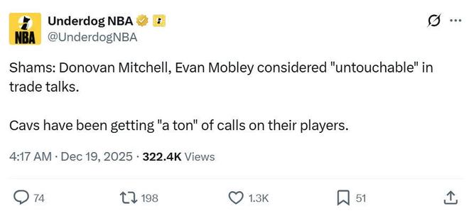 面对这样的局面,以及即将全面爆发的季中交易期,骑士队已经做好调整阵容的准备。 根据名记Shams报道,已经有数支球队致电骑士队询问交易可能,骑士队明确表示米切尔与莫布利是球队唯二不可交易球员,也就是说除了两人之外,其余球员都可以交易。