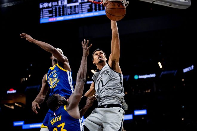 有两个数据值得深思,马刺这套非常规的首发,福克斯+瓦塞尔+卡斯尔+巴恩斯+科内特,百回合能赢对手10.3分;马刺出战最多的一套正常首发:瓦塞尔+尚帕尼+卡斯尔+巴恩斯+文班,百回合能赢对手12.9分!也就是说马刺在过去几个赛季,优中选优,边缘化凯尔登约翰逊+索汉等人后,他们已经形成了新的崛起框架,文班亚马+卡斯尔+瓦塞尔+哈珀代表着球队的未来,卡斯尔当选过最佳新秀,文班亚马也当选过最佳新秀,还有榜眼哈珀随时能在逆境挺身而出,这套阵容上限可太高了。