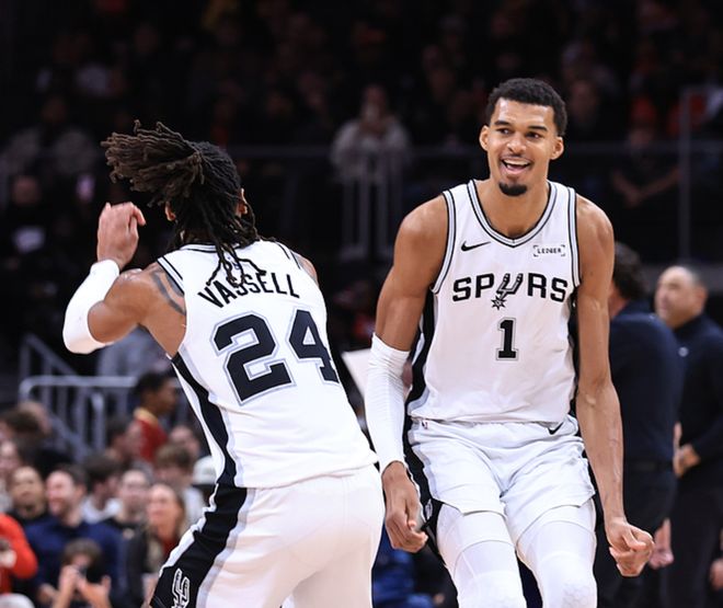 北京时间2025年12月20日,今日NBA有5场比赛,马刺、雷霆、森林狼参与其中,赛后西部排名发生了变化。 马刺客场对阵老鹰,马刺主力俱在,老鹰方面特雷杨、波津缺阵,马刺优势巨大,首节赢了13分,半场战罢领先24分,三节战罢领先30分,第四节时分差一度来到38分,最终马刺大胜了28分。文班只打了21分钟,15中10(三分4中2)得到26分12板3助2帽,瓦赛尔15中7(三分9中4)得到18分7板3助2断,卡斯尔10中7得到17分2板7助。老鹰方面约翰逊11中6得到17分11板6助,沃克18中7得到23分2板4助。