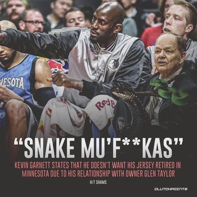 早在2022年3月,凯尔特人就为加内特退役了5号球衣。森林狼的21号球衣,为何迟迟没退?加内特退役之前,跟当时的森林狼老板格伦-泰勒发生矛盾,KG公开表示拒绝被森林狼退役球衣。今年6月份,森林狼正式易主,泰勒卖掉球队。