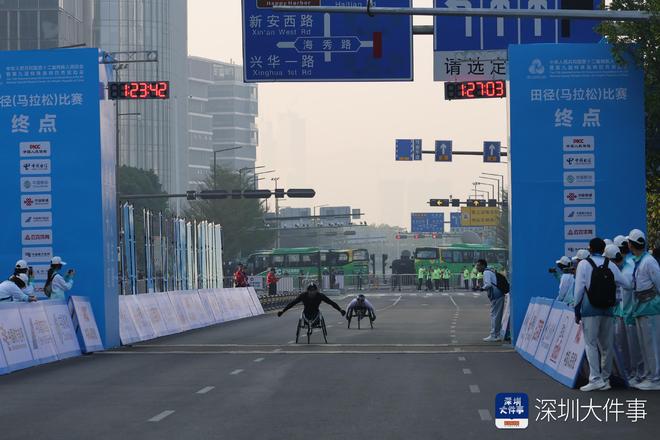 12月7日,全国第十二届残疾人运动会暨第九届特殊奥林匹克运动会田径(马拉松)项目在深圳开赛,比赛路线与2025深圳马拉松一致,起终点均分别为市民广场与宝安海滨广场,残特奥马拉松比赛分别于6时30分、33分两枪起跑。据了解,本届残特奥会马拉松比赛共有21支队伍参赛,涵盖20个省(市)、自治区及香港特别行政区,其中广东代表团共派出2支队伍9名运动员参赛。在激烈的竞争中,广东选手黄增丽斩获女子全程马拉松T12级(视力障碍)决赛金牌,并以3小时7分03秒的完赛成绩刷新全国纪录;陈晓纯则在女子全程马拉松T54级(竞速轮椅)决赛中获得一枚银牌。大众组比赛方面,来自深圳的选手孙亮亮在全程马拉松T46级男子组比赛中获得第四名。