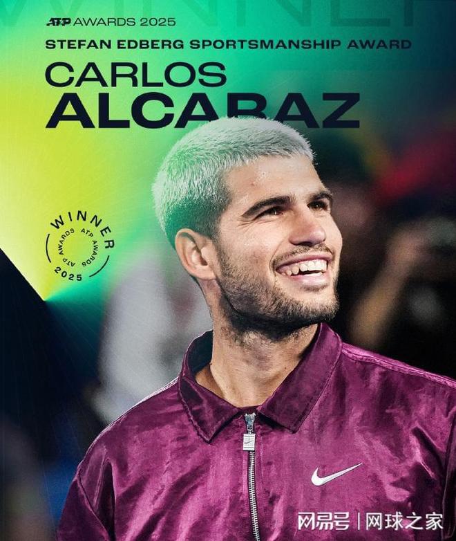 而阿尔卡拉斯则是在三年内第二次把斯蒂芬-埃德伯格体育风尚大奖收入囊中,可喜可贺也实至名归。这几年,阿卡在面对主裁误判、球迷干扰,争议判罚等时刻,都显得十分大度,每次都谦让,从不争辩,可谓高风亮节,赢得了对手和球迷的一致称赞。