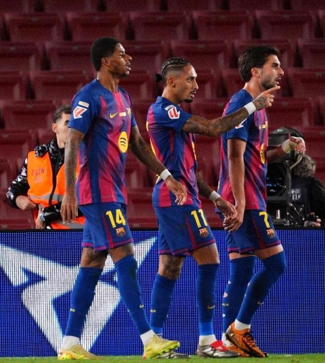 这一个比赛日,联赛正处于六连杀的巴塞罗那,迎来了第十六轮的考验,坐镇主场迎战奥萨苏纳,本场比赛巴塞罗那在诺坎普攻防两端完胜对手,靠着拉菲尼亚的梅开二度,2-0全取三分,多赛一场的情况下,领先第二名皇马7分。