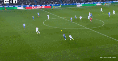 第68分钟,阿拉维斯这边也是中后场快速反击,布兰科一记精准的超远距离过顶长传撕破皇马防线,刚刚替补登场不到1分钟的维森特高速插上将球卸下,顺势杀入禁区获得单刀良机,维森特调整好脚步大力兜射,皮球应声入网,阿拉维斯1:1扳平比分。第75分钟,皇马获得禁区弧顶左侧位置很好的任意球机会,罗德里戈操刀主罚没有打好,大力兜射直接打了飞机。1分钟后,皇马快速反击转移到左侧,维尼修斯高速插上接球,头球往前一顶人球分过强行过掉回防的奥托,维尼修斯突入禁区后横传做饼,后排插上拍马赶到的罗德里戈小禁区前沿超近距离单刀直接推射得手,皇马2:1再次取得领先。之后皇马后防没有再坑,2:1笑到最后止住颓势。